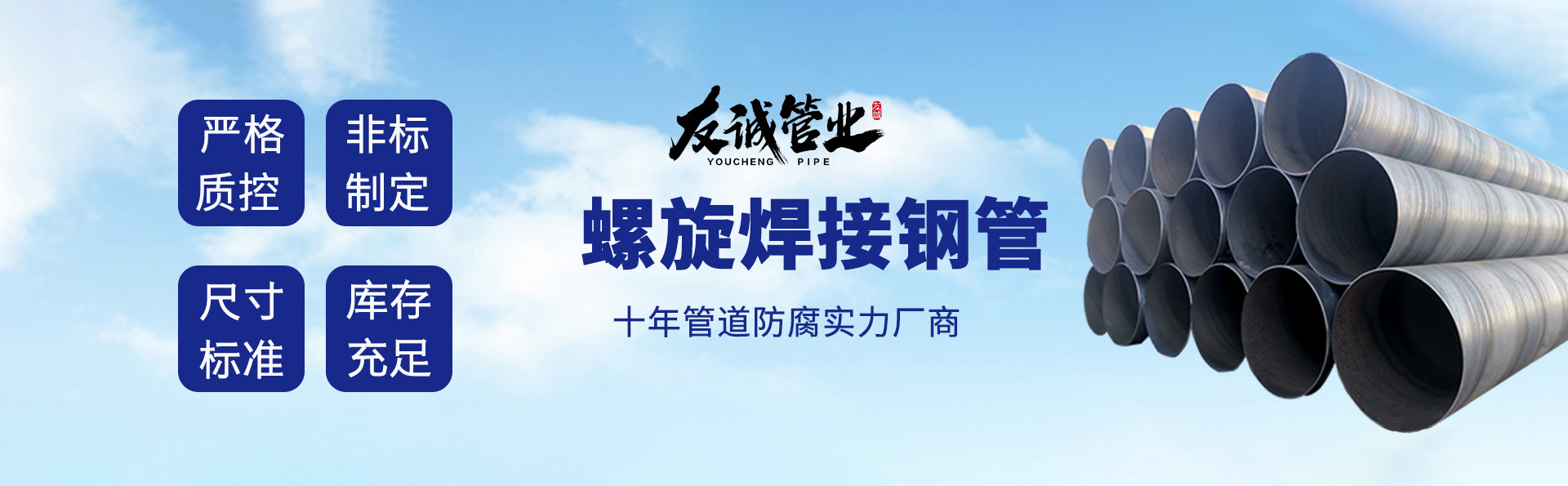 滄州友誠管業(yè)有限公司是一家專業(yè)從事生產(chǎn)防腐涂塑管道及管件于一體的大型企業(yè)。公司注冊(cè)資金8600萬元,位于中國管道生產(chǎn)基地—河北鹽山縣,近靠京滬高速、榮烏高速、黃石高速30公里,高鐵滄州西站40公里,天津國際機(jī)場、濟(jì)南遙墻機(jī)場150公里,為客戶來訪及業(yè)務(wù)發(fā)展提供了便利的交通條件。 鋼管系列:螺旋鋼管、無縫鋼管、ERW直縫焊管、JCOE埋弧焊直縫鋼管、熱鍍鋅鋼管。 涂塑系列:內(nèi)外涂塑鋼管、涂塑復(fù)合鋼…… 了解更多